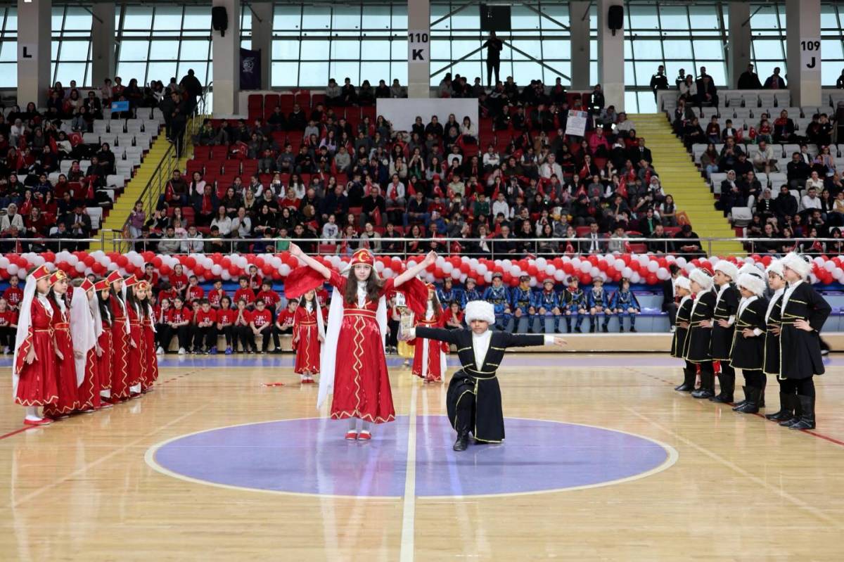 Tören alanı, halk oyunları ekiplerinin gösterileri, renkli etkinlikler ve çocukların neşeli anlarıyla bayram havasına büründü.