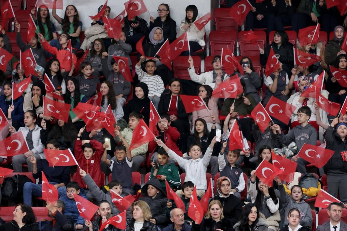Cumhuriyetin kurucusu Mustafa Kemal Atatürk’ün çocuklara armağan ettiği bayram kapsamında düzenlenen etkinliklerde, alanı dolduran çocuklar ellerinde Türk bayraklarıyla coşkuya ortak oldu.