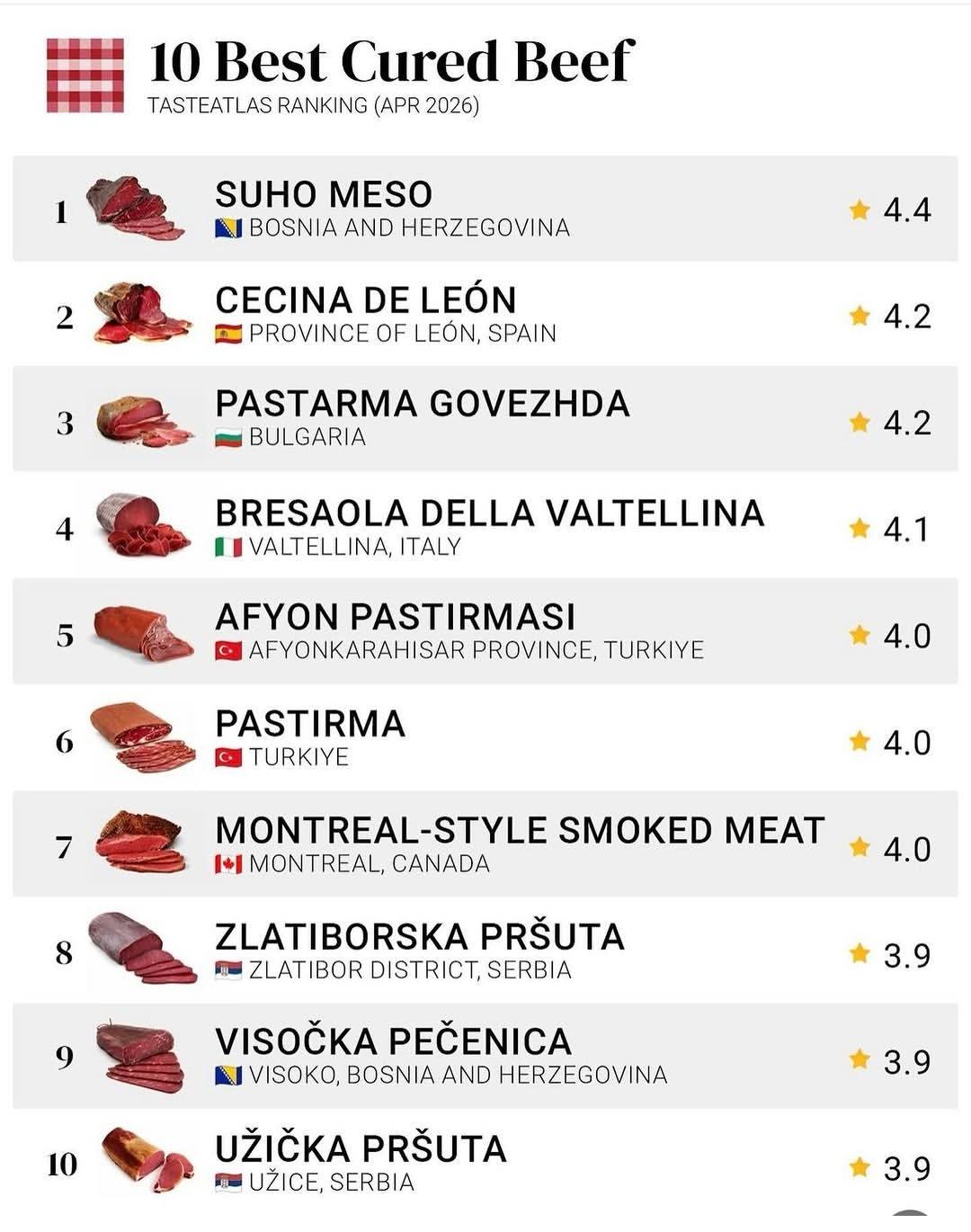 Afyonkarahisar’ın köklü lezzetlerinden Afyon Pastırması, TasteAtlas tarafından “Dünyanın En İyi 10 Et Ürünü” listesine dahil edilerek uluslararası alanda önemli bir başarı elde etti.