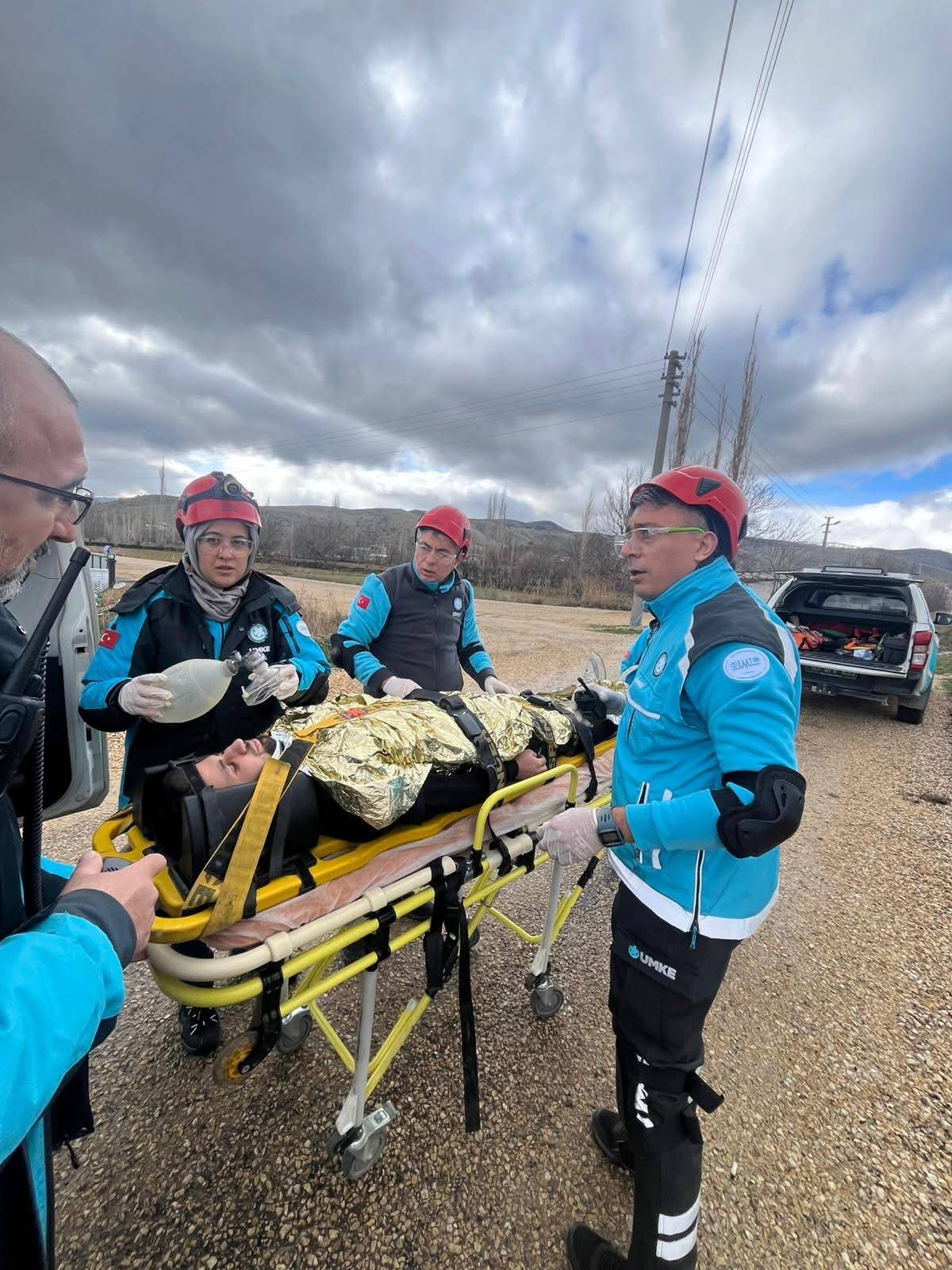 Mareşal Fevzi Çakmak Mahallesi’nde gerçekleştirilen tatbikata 22 UMKE personeli ve muhtarlık koordinasyonunda hasta yakını rolüyle çevre halkı katıldı.