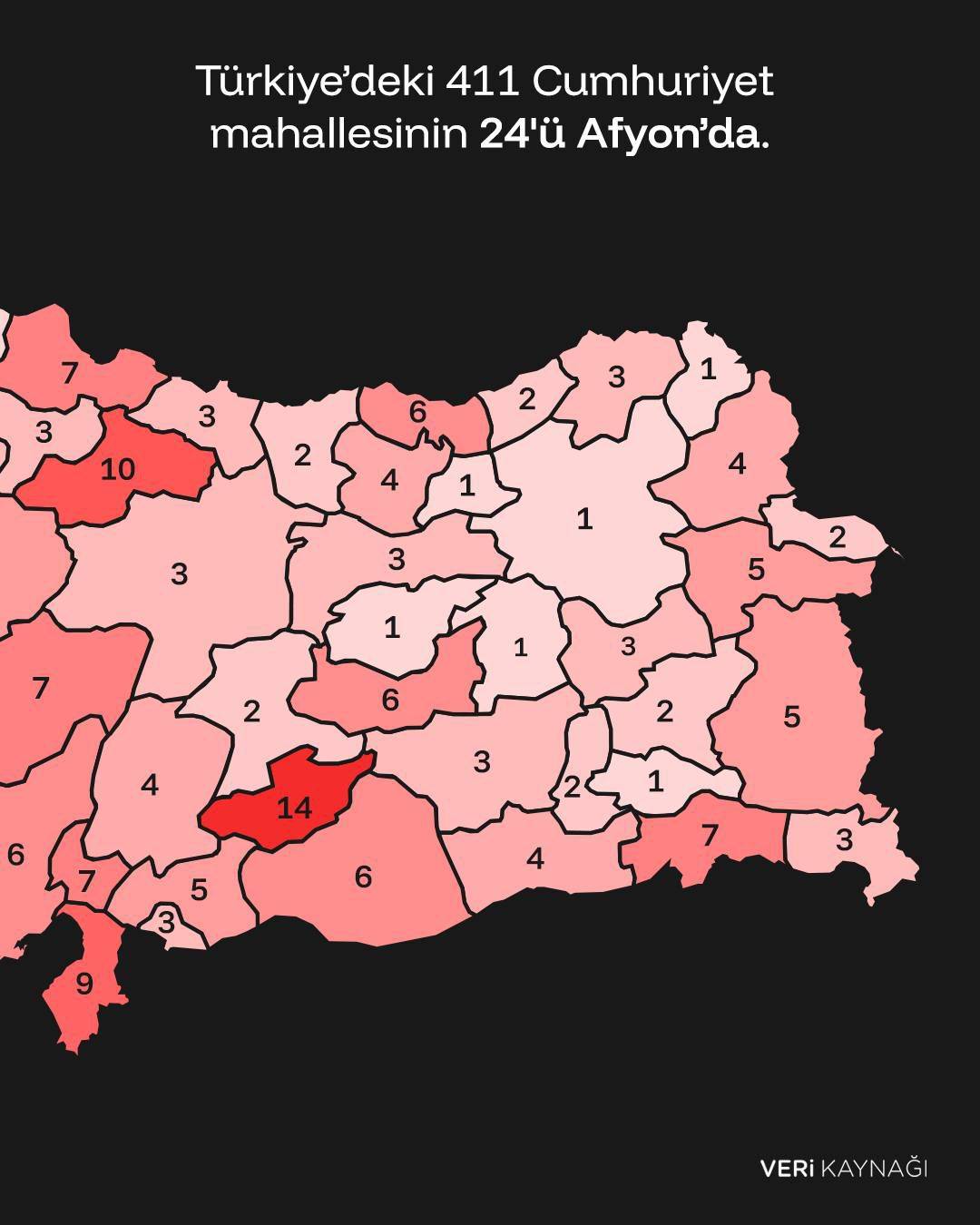 Türkiye genelinde toplam 411 adet Cumhuriyet Mahallesi yer alıyor. En fazla Cumhuriyet Mahallesi bulunan iller arasında Afyonkarahisar, İzmir ve Adıyaman başı çekiyor. Afyonkarahisar’daki 24 Cumhuriyet Mahallesi, bu ismin kent genelindeki yaygınlığını açıkça ortaya koyuyor.