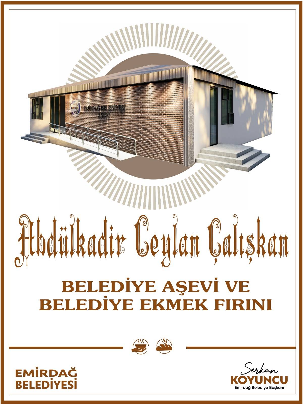 Emirdağ’da son yıllarda hayata geçirilen altyapı, kültür, spor ve sosyal projelerle dikkat çeken Belediye Başkanı Serkan Koyuncu, gönül belediyeciliği anlayışını yeni yatırımlarla sürdürüyor. Bu kapsamda Emirdağ Belediyesi, “Abdülkadir Ceylan Çalışkan Belediye Aşevi ve Halk Ekmek Fırını” projesinin inşaat çalışmalarına resmen başladı.