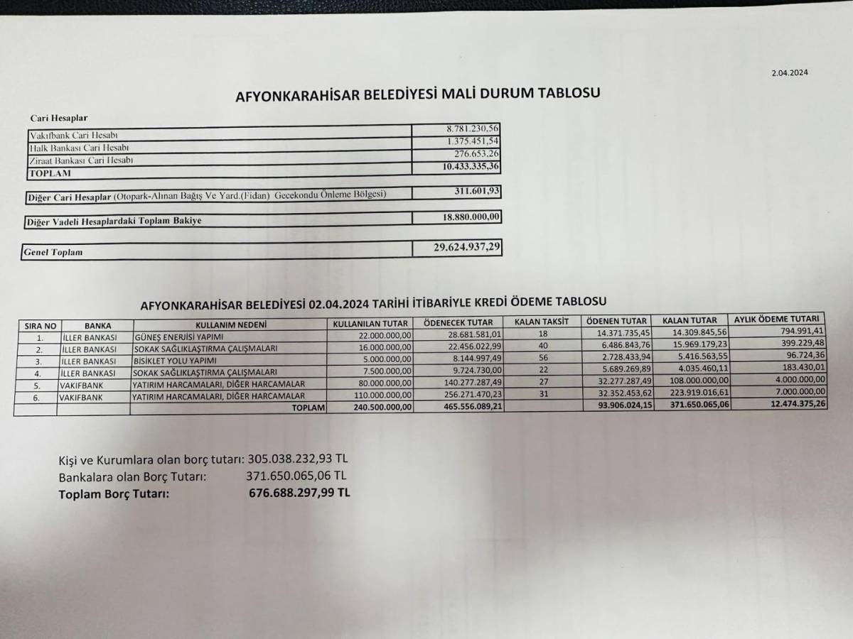 Nisan ayı başında alınan son borç durum belgesini kamuoyuyla paylaştıklarını hatırlatan Zeybek, “Gelir bütçesine istinaden yüzde 10 borcu olan bir belediye teslim ettik. Ancak sürekli tekrarlanan bu durum farklı algılara neden olmaktadır. Sözde 1,5 milyar TL olduğu açıklanan borcun 320 milyona düştüğü söyleniyor. Bunun hangi kalemlerden ödendiğini açıklamaları daha isabetli olacaktır” diye konuştu.