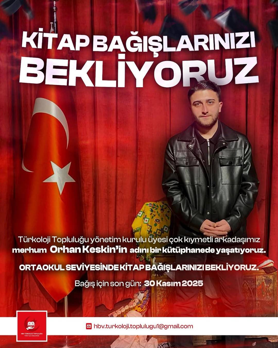 Ailesi, arkadaşları ve onu sevenlerin katkılarıyla kurulacak olan Orhan Keskin Kütüphanesi için kitap bağışı kampanyası başlatıldı. Türkoloji Topluluğu Yönetim Kurulu Üyesi olan merhum Orhan Keskin’in anısını yaşatmak amacıyla hayata geçirilen proje kapsamında, ortaokul seviyesine uygun kitap bağışları kabul edilecek.