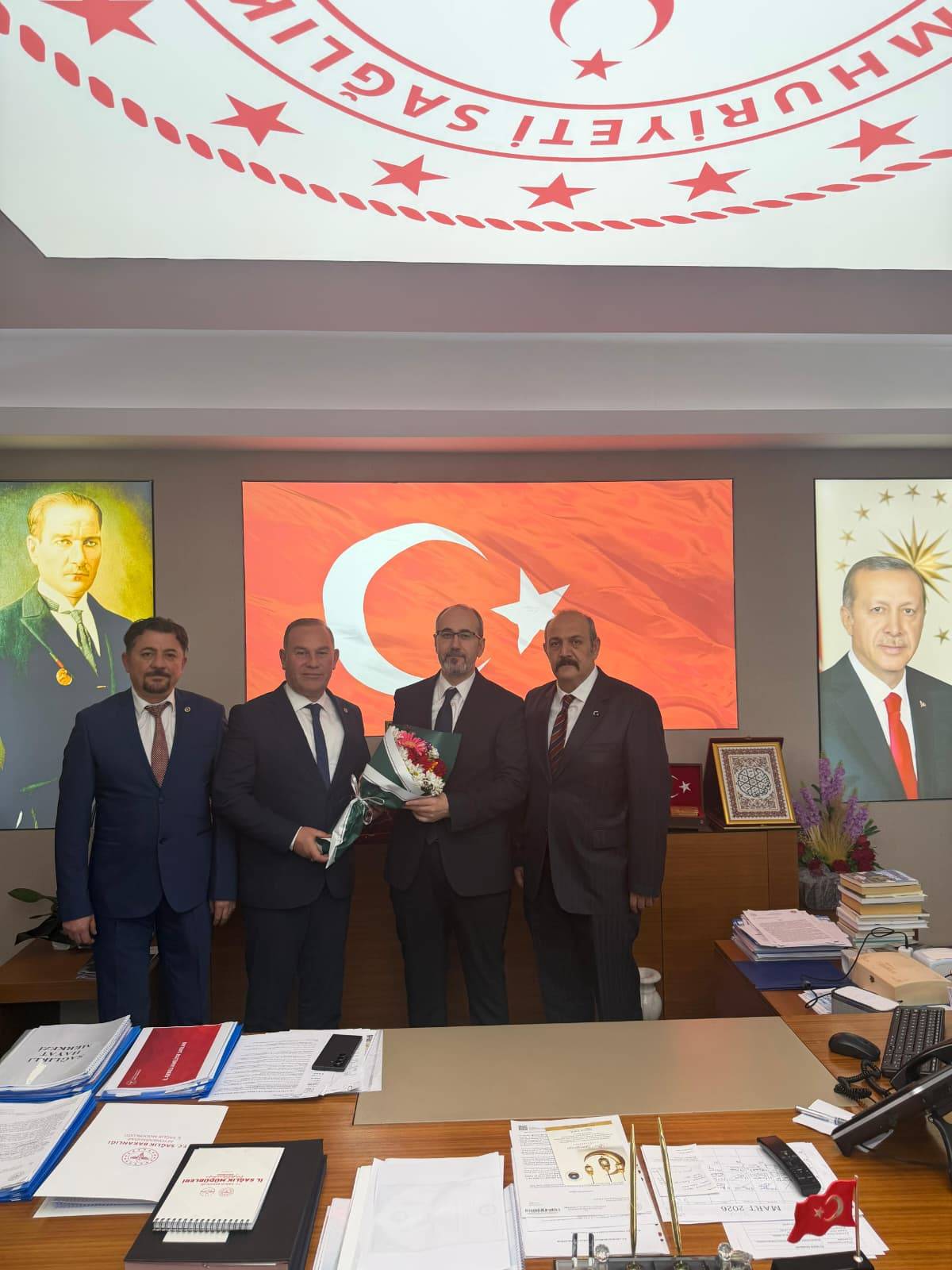 Heyet ilk olarak Hakkı Öztürk’ü makamında ziyaret etti. Ziyarette sağlık hizmetlerinin önemi ve sağlık çalışanlarının büyük fedakârlıklarla görev yaptığına vurgu yapıldı. Günün anısına çiçek takdim edilirken, İl Sağlık Müdürü Öztürk nazik ziyaretlerinden dolayı heyete teşekkür etti.